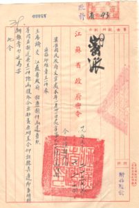 江阴县公民邱维章直接呈文国民政府主席、蒋委员长,国民政府文官处发文称“兹接邱维章呈一件,奉主席谕交江苏省政府,相应检件函达查照等因,并检送原呈一件,除函复外,合函抄发原附呈,令仰该县长遵即查明核办报夺勿延为要。“