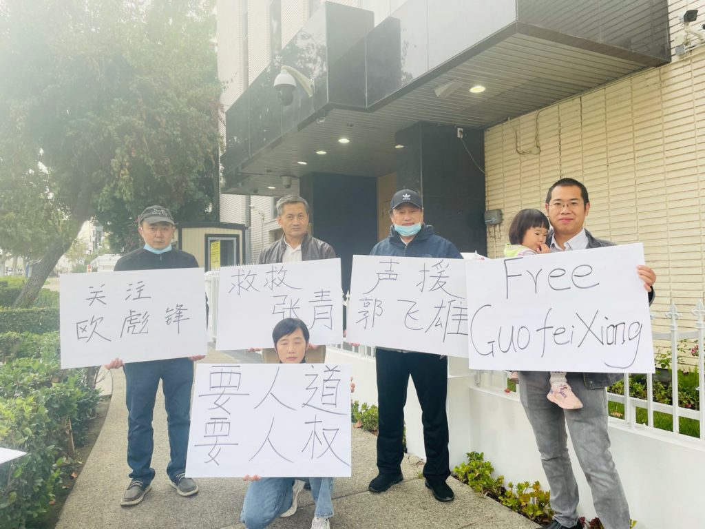 由中国民主党主席王军涛和洛杉矶民运人士成秋波先生召集,一群洛杉矶华人聚集在中共住洛杉矶领事馆门口,抗议中国政府对民间异议人士郭飞雄的迫害。以及中国政府对郭飞雄夫人张青的不人道待遇。