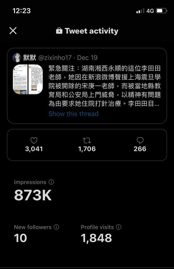 推特网民“默默”账号管理者告诉本台,李田田的亲友最新情况: