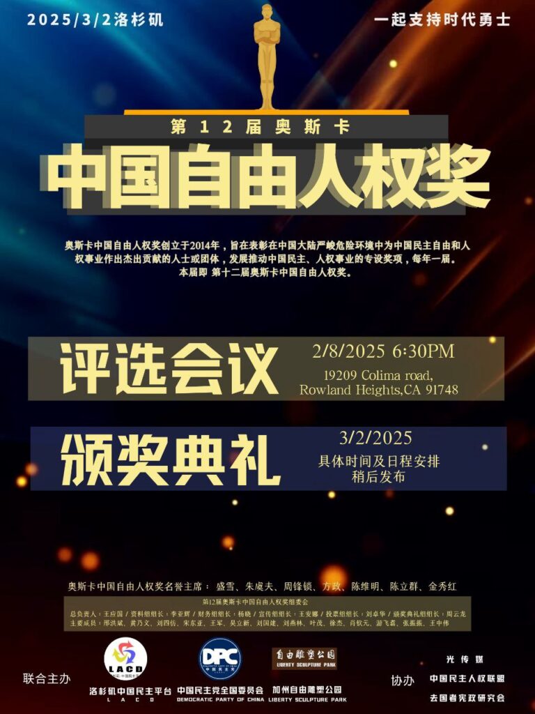 奥斯卡中国自由人权奖由海外华人于2014年…
